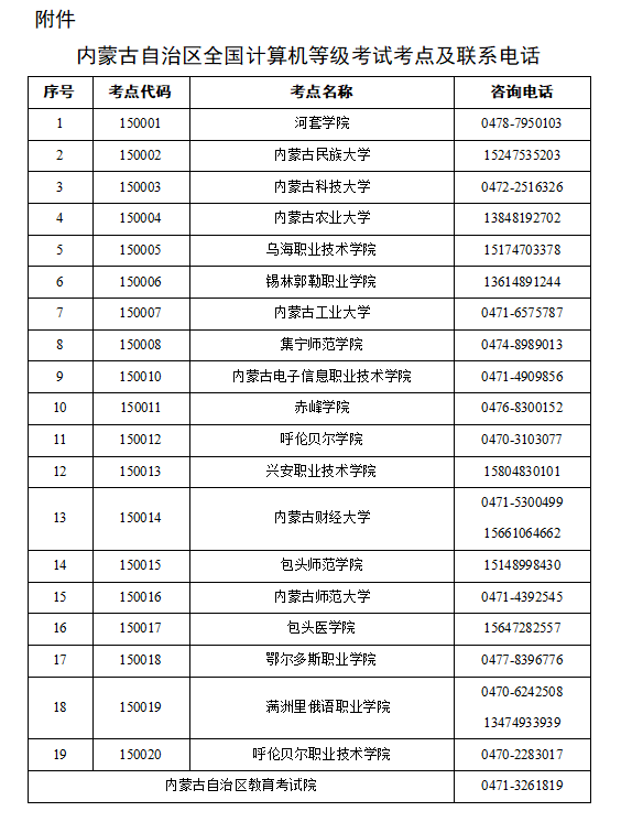 附件:内蒙古自治区全国计算机等级考试考点及联系电话
