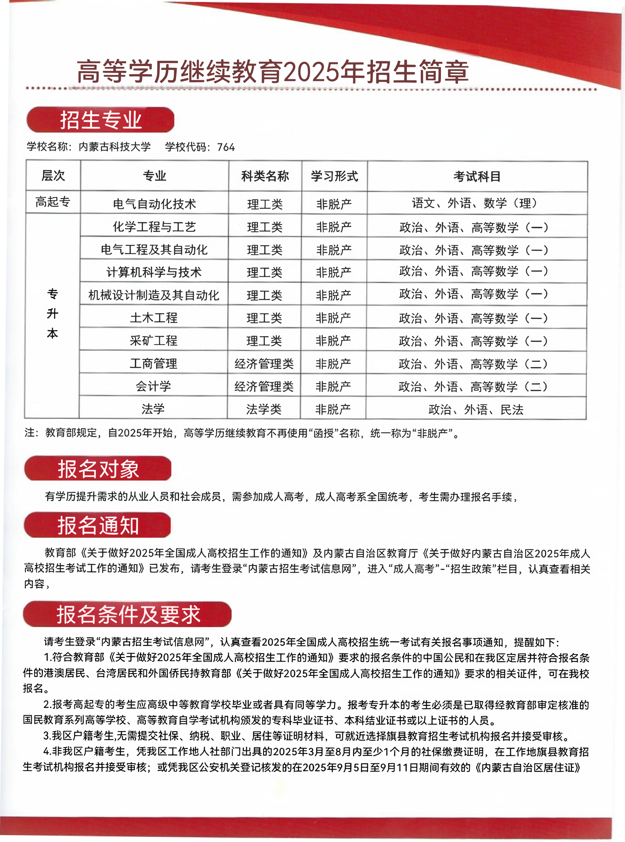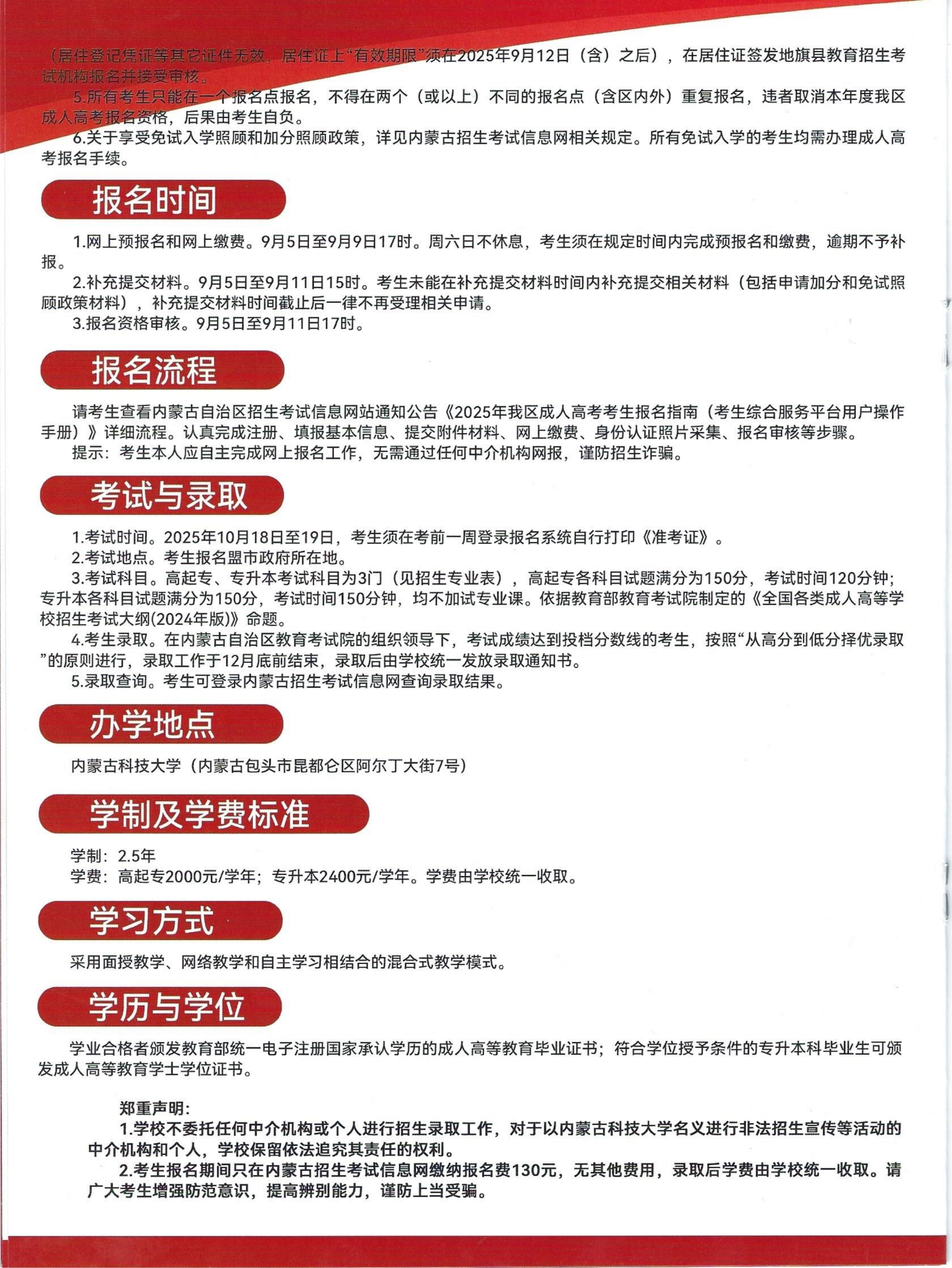 内蒙古科技大学高等学历继续教育2025年招生简章